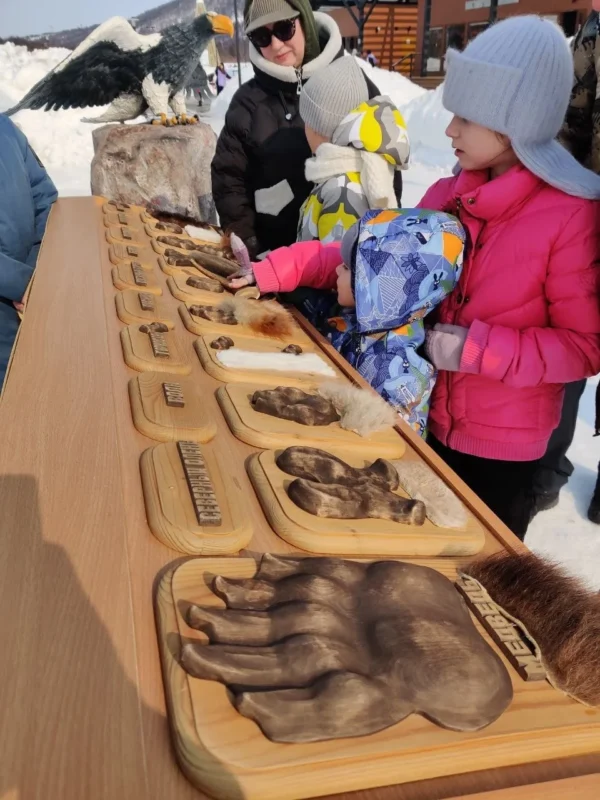 — Пройти интерактив для детей и взрослых: угадывать следы, рассматривать шерсть под лупой, задавать вопросы учёным и сотрудникам заповедника.